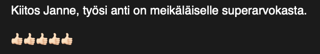 Palautetta tulee toki muustakin, kuten esimerkiksi tämä tuore palaute: