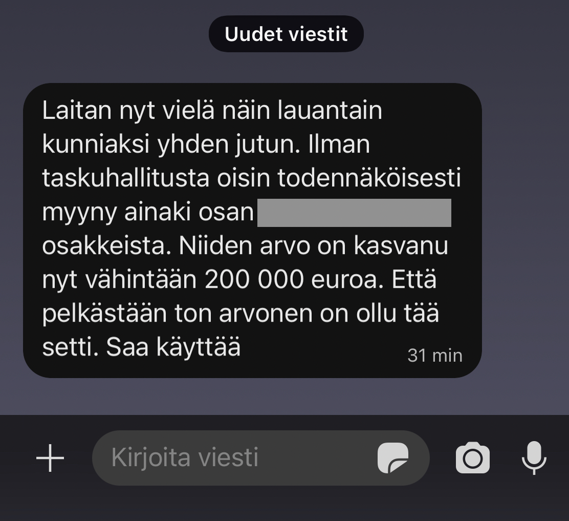 Sain lauantaina Tulostulva® Taskuhallitusasiakkaalta palautetta pyytämättä ja yllättäen. Se on tuossa alla.👇